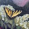 Pink flowers in a yellow pitcher, acrylic on cavas, 2025, 4" x 8"